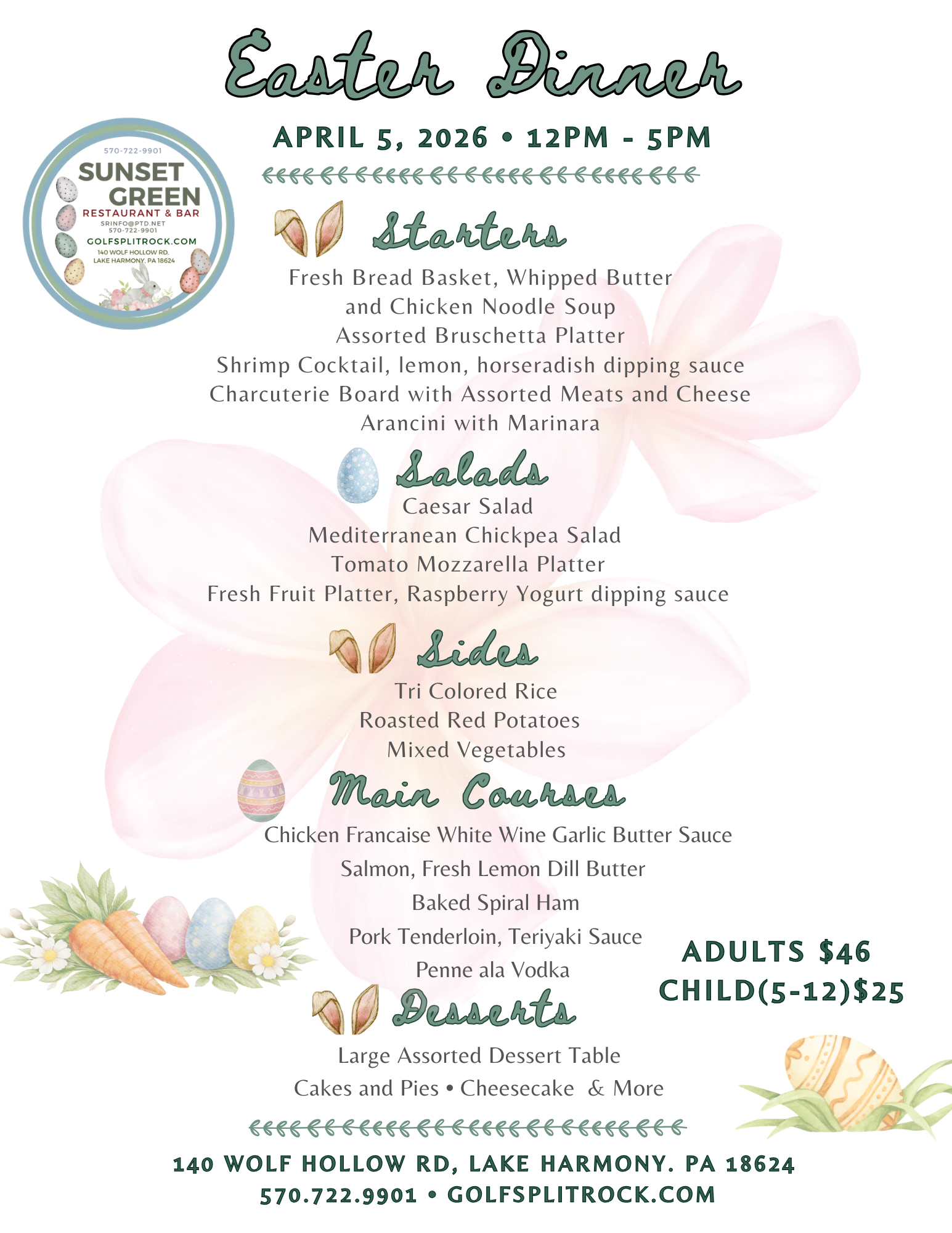Sunset Green is located at Split Rock Golf Club and Open to the Public for lunch and dinner.
